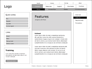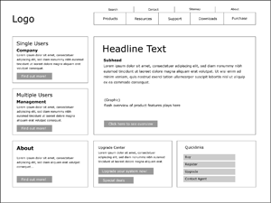 -- Page structure: Work as a team and define/explore 3 - 5 different ways to organize the information on the Homepage (navigation and content). Explore different ways to structure the page, so you can "test" which is best. Think of the structure as a grid, you will need columns, hanglines, gutter; links, intro text or main text, body text, images... (min. gutter 10 px). "Sketch" these on the computer (600px tall x 800 px wide). Include all consistent navigation, main content, links... Your user should be able to look at the page and see where they have to click on to go down your defined path. Save them as a pdf. (only as a wire frame: no real images, typography, color...)