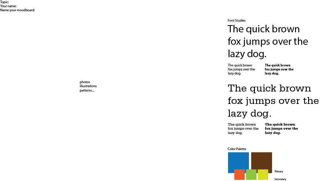 7. Create 3 different moodboards (for 1 topic). Not 1 mood board for 3 topics. See your class notes about moodboards. Use the moodboard template.